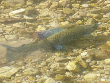 Certaines truites mâles n’ont pas déserté les frayères, et se font chahuter par les ombres qui ont tendance à les prendre pour des concurrents dans leurs joutes amoureuses.