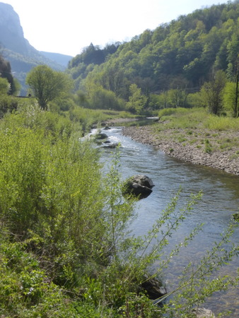 Le printemps est bien là, avec sa végétation qui commence à s’installer. Comme ci-dessous en amont de St-Rambert en aval du pont de Reculafol.